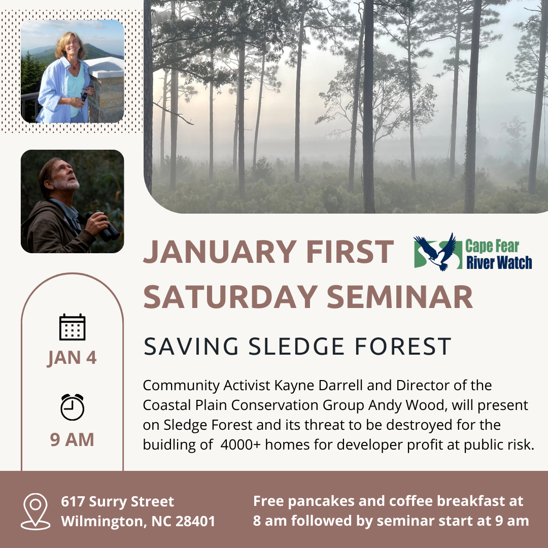 For our first seminar of 2025, Community Activist Kayne Darell and Director of the Coastal Plains Conservation Group Andy Wood will be joining us to present on Sledge Forest!